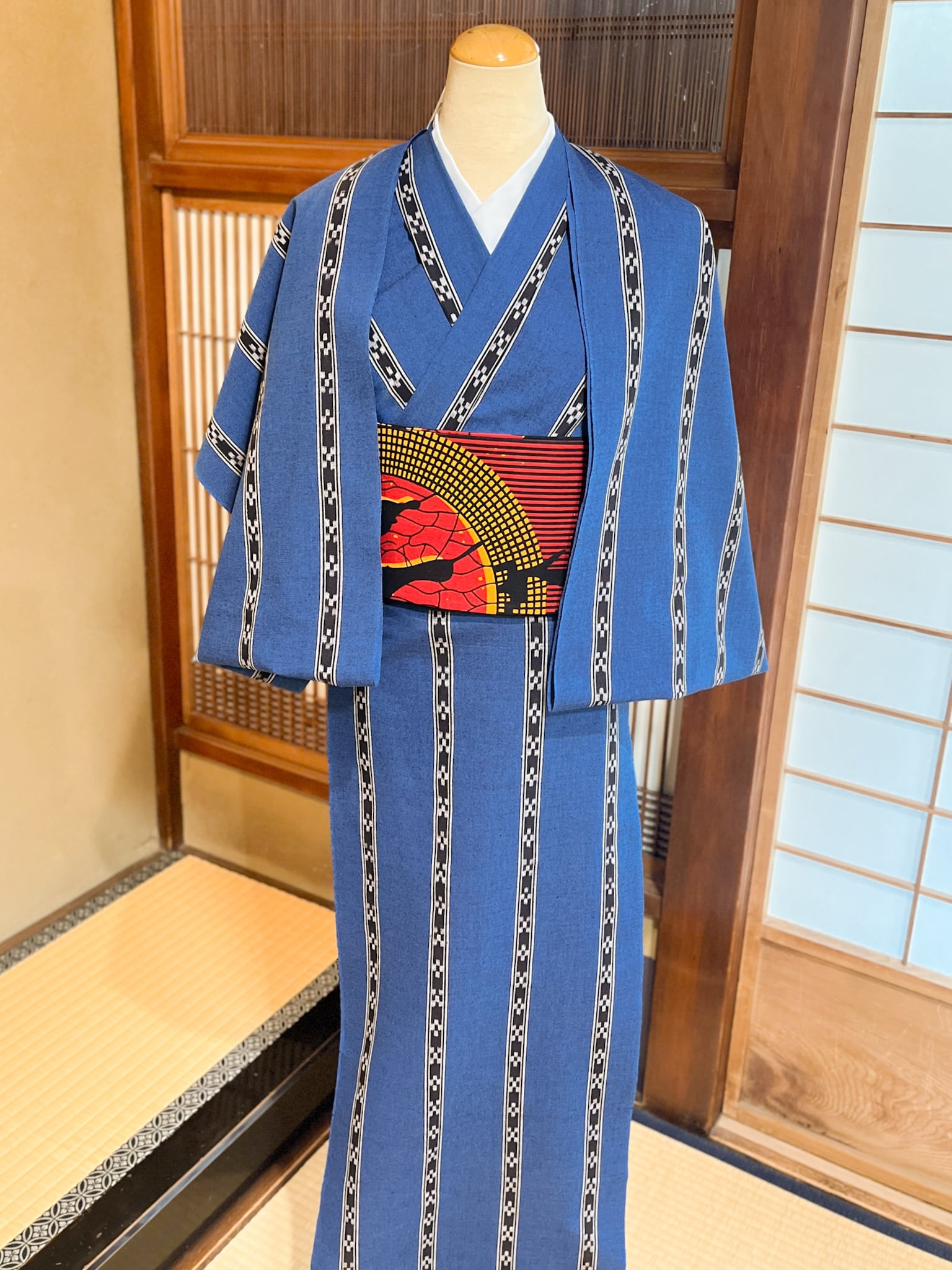 ⚫︎こちらの反物を当店でお仕立てされる場合は、単衣仕立て/国内or海外手縫い/女性ーバチ衿or男性ー棒衿仕立て、になります。(居敷当て・背伏せ、は付いておりません)