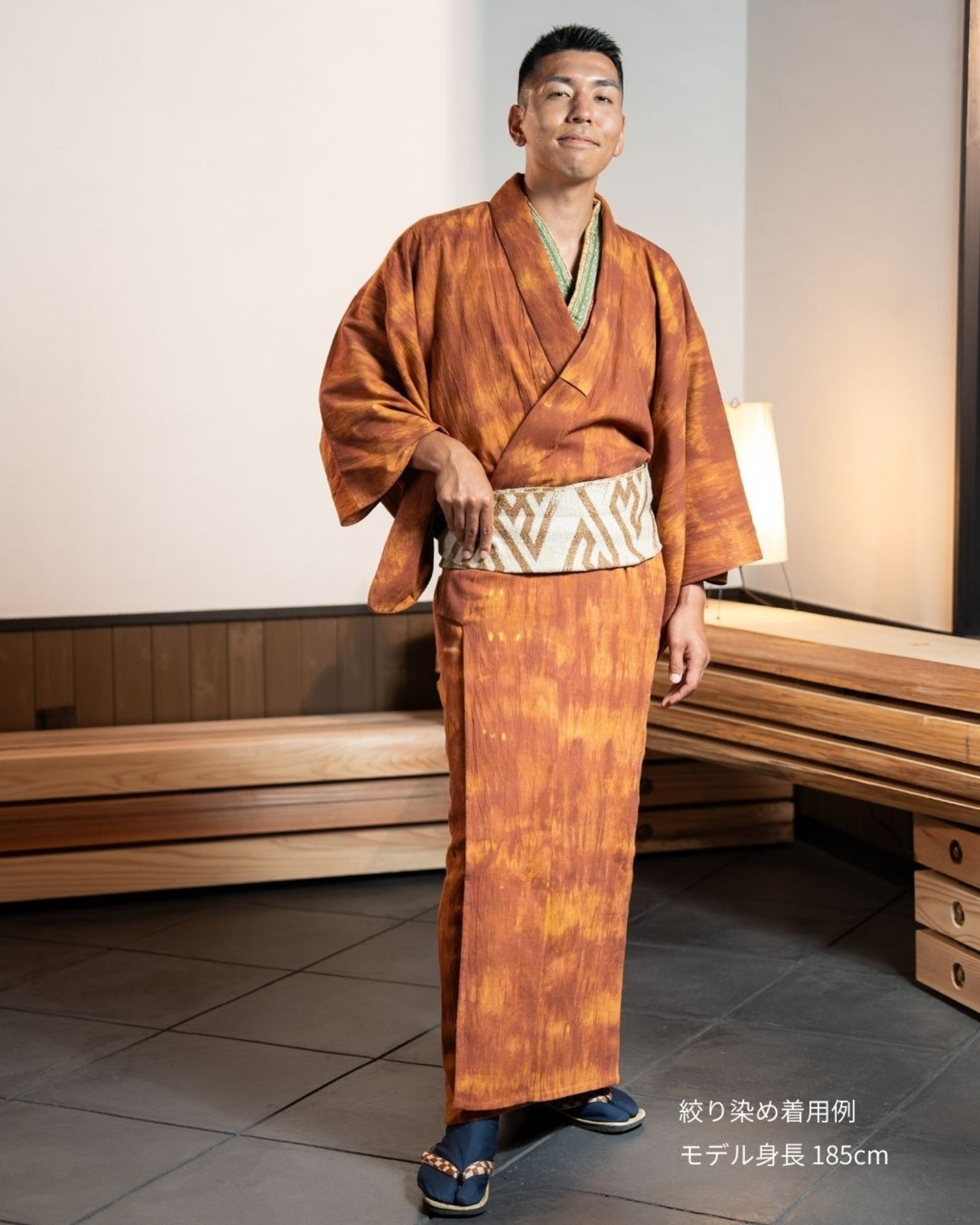 布を縛り、染め上げる伝統技法「絞り染め」により、偶然が生み出す模様と職人の感性が調和。