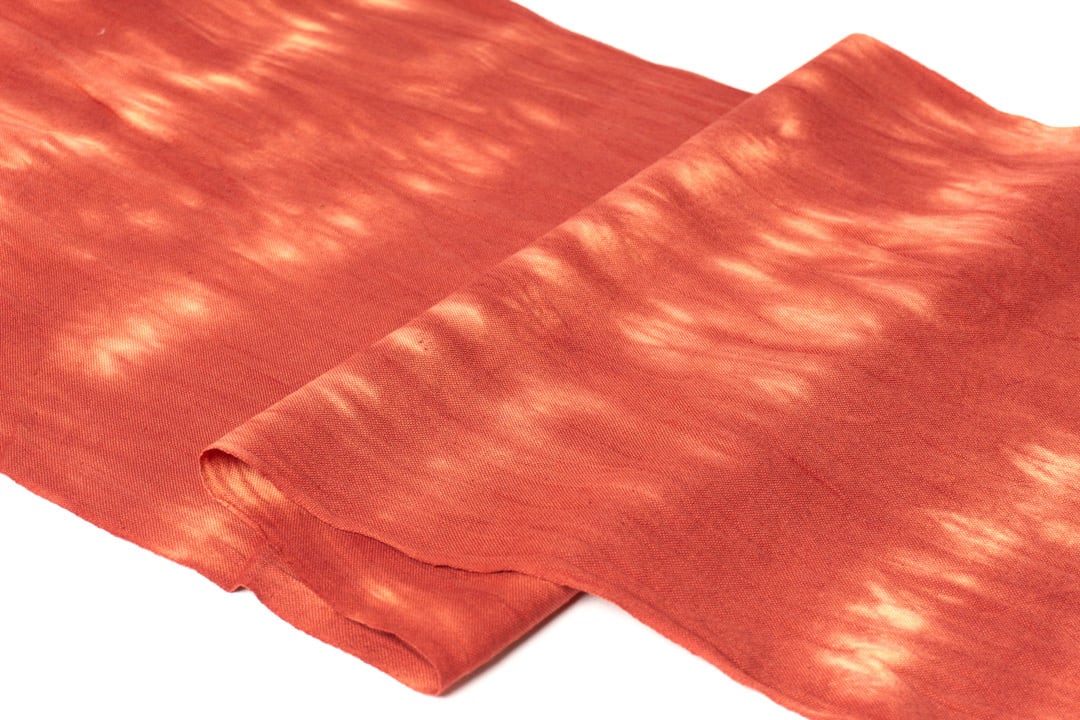 一つひとつ丁寧に手作業で染め上げられた生地は、柔らかな濃淡と自由な模様が特徴。