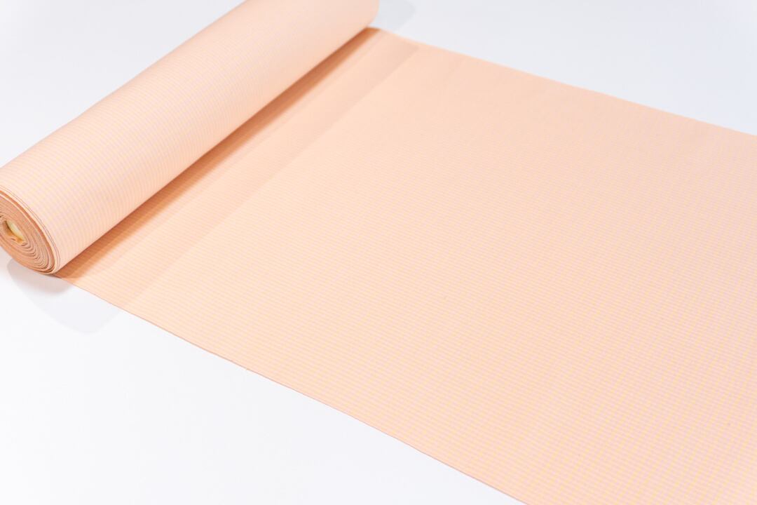 カジュアル着として着物をより身近なものに、と緯糸に絹100%を使いながらもお家でお洗濯が可能な生地を作られました。