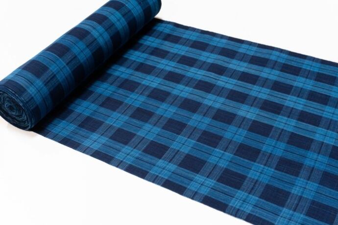 松阪木綿は天然藍の先染め糸から織りなす縞や格子が特徴です。